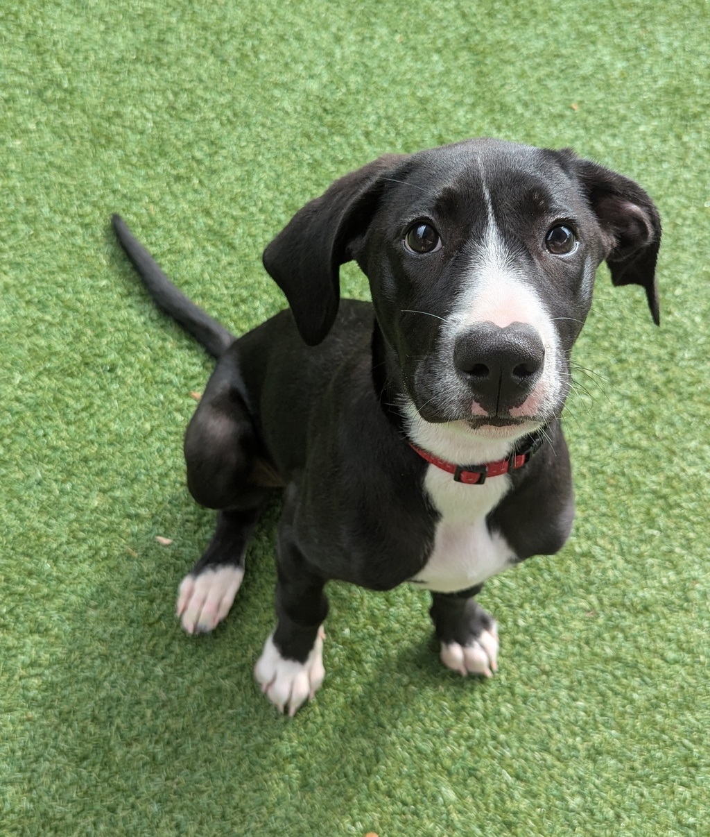Her sweetness is infectious, and her friendly nature is sure to win over anyone she meets. She is a bundle of energy, so will do well with a family that will give her lots of exercise (both mental and physical). She is also learning the in's and out's of being a dog, so will need adopters that are ready to continue training. Because she is still learning her Doggie manners she is not suited to young children, small dogs, cats or the elderly, very jumpy.