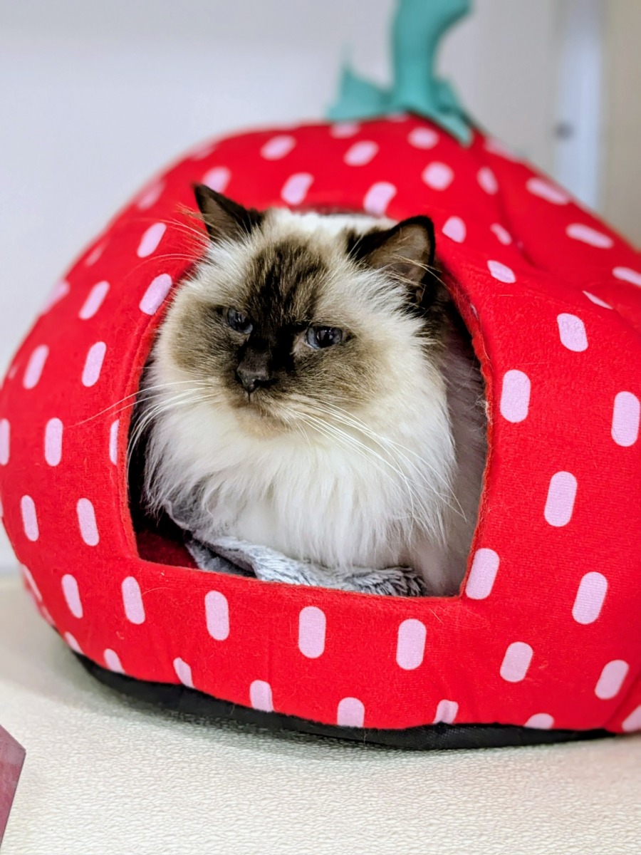 She loves her dry food and will make a loyal, gentle companion for someone patient and caring. If you can provide a calm home and a little extra grooming, Cleo will reward you with affection.