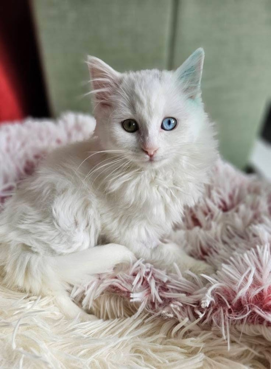 With her soft, snow-white fur (hence the name, of course!), she's as lovely to look at as she is to have around. She enjoys gentle head scratches, a warm sunbeam for napping, and the comforting presence of her humans.
