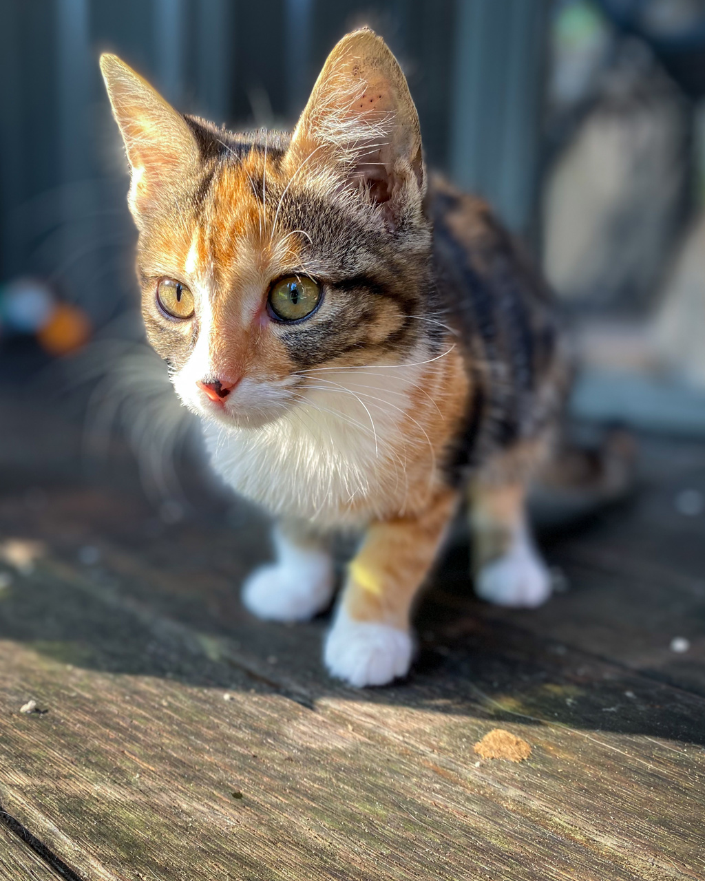 Brittany is a super sweet girl. A gorgeous calico with white eyeliner. She is very friendly and loves cuddles and affection.