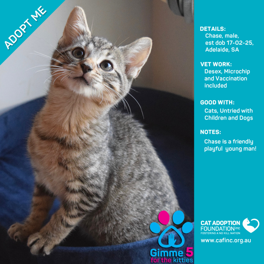 Donate to Chase at Cat Adoption Foundation Incorporated via Shout