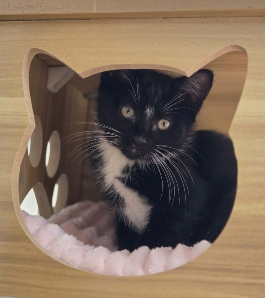 Sammy is a sweet, gentle kitten with a playful side and a calm confidence that makes him easy to love. He might not be the loudest or the wildest in the bunch, but he’s always nearby, watching the action and quietly joining in when the mood strikes.