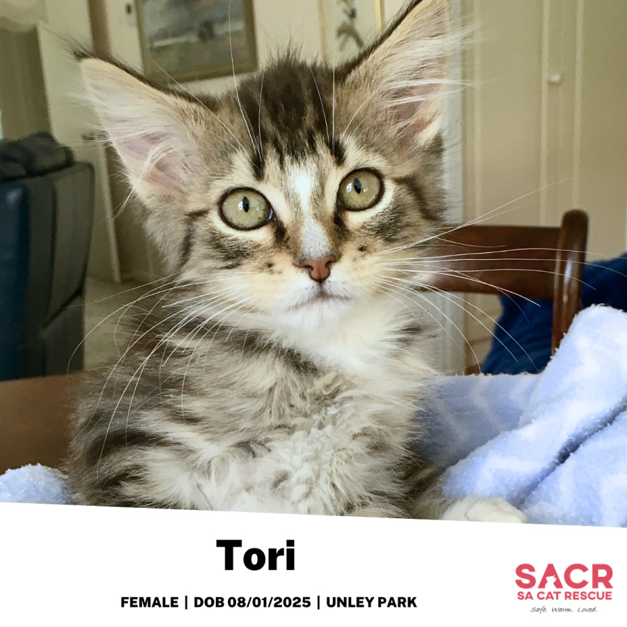 Meet Tori, the ultimate cuddle queen with a heart full of love and a purr that could out-volume your TV. This gorgeous girl is the definition of affectionate – she lives for chin rubs, head scratches, and giving head bumps to her favourite humans.