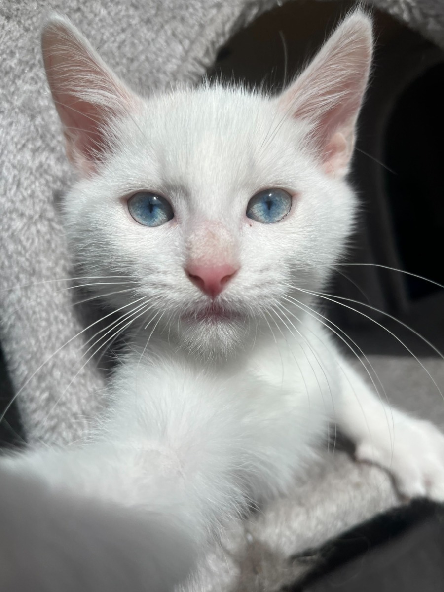 Already incredibly stunning with his soft white fur and bright blue eyes, tiny Boba is going to be one helluva handsome lad when he grows up!