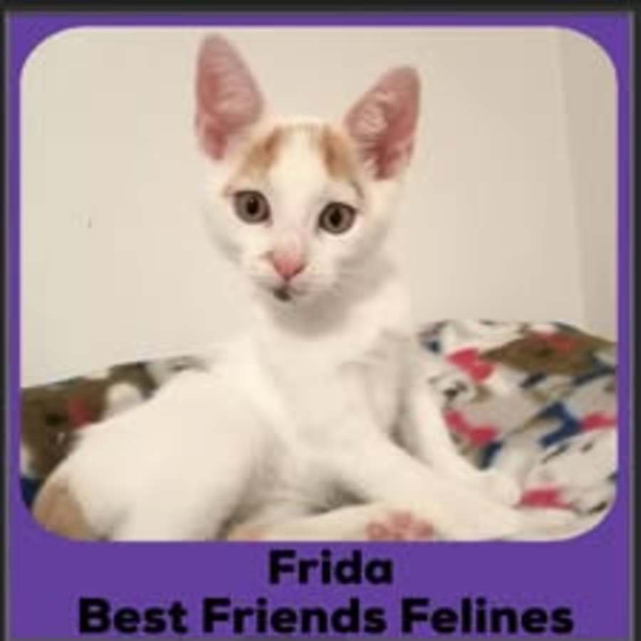 Frida is an eye-catching calico girl with a sweet face, a silky coat, beautiful yellow eyes and very unusual markings on her face and body. She is an adventurous and inquisitive little kitten who loves to play and climb, and she is keen to have a paw in everything that's happening, especially if it's happening in the kitchen ! She absolutely loves her food, enjoys making new human friends after a gentle approach, and is a competent litter box user. She is a sweet-natured charmer who will grow into a stunning cat. Frida came into BFF care with her brother Dali to whom she is very close. She looks for Dali and calls for him if she is unable to see him so would be a great choice for a double adoption or a home with an existing friendly cat. If you would like to meet this little one please click on the link and complete the form - [bestfriendsfelines.com/forms/meetngreet-form/