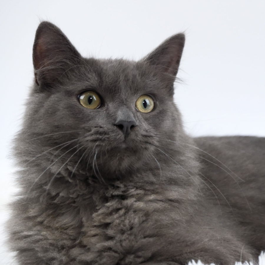 Brace yourself... there’s a new predator on the prowl—and by "predator" we mean an adorable, blue, medium-haired cuddle monster named Sharkie!