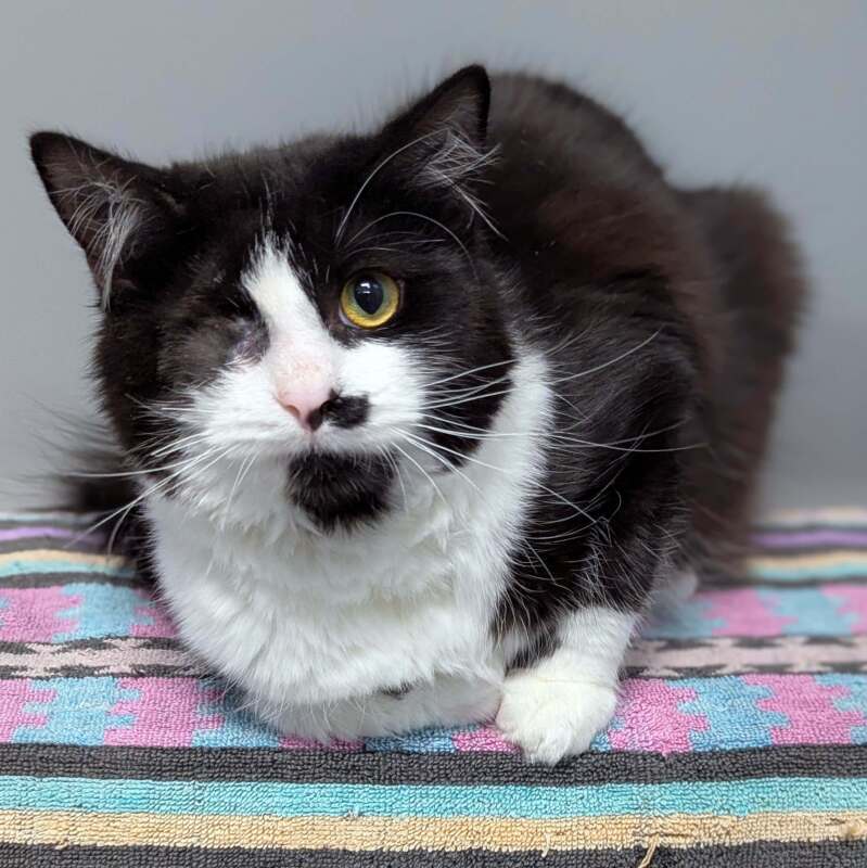 Hello! I'm Freddie, a one-year-old, medium-haired domestic cat. I'm a boy with a medium energy level and I love to play, but I also know how to relax and enjoy some quiet time. I've been told I'm pretty good with kids - I've never had any problems there. I'm looking for someone who's had a cat before and knows how to make a feline like me feel loved and cherished. You may have noticed, I am missing an eye! But don't let that fool you I can get along just as well as any other cat. I may however need some time to adjust to my new surroundings, so please be patient with me. Once I feel comfortable, you'll get a lot of purrs and body flops from me! I've got a lot of love to give in return, and I'm ready to be your new best friend. Will you be mine?