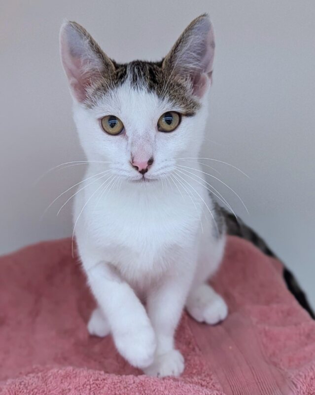 Hello there, I'm Bob, a fun-loving, 2-month-old male kitten with a soft, short-haired coat.