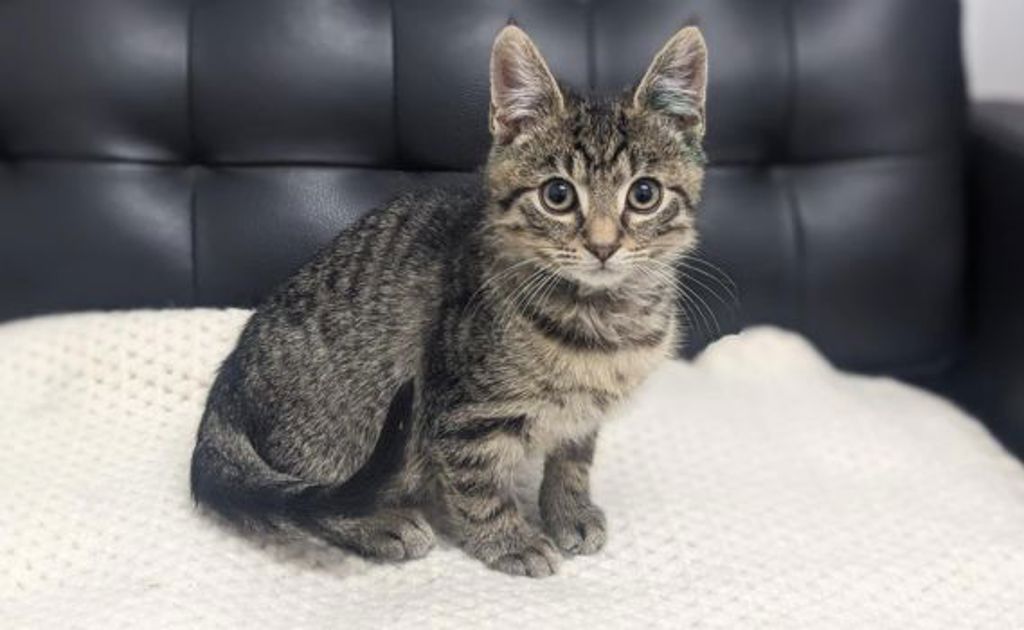 Dewey isn't the kind of kitten who will pounce after toys or climb up your legs for attention. He's more of the kind of boy who peeks at you from behind the furniture, watches quietly from the shadows, and takes baby steps toward trust. But once you're in? You're really in. It'll take some time to teach this unsure guy that the world isn't as scary as he thinks, and if looking for a gentle home who can let him warm up in his own time and give him soooooo much love he can't help but accept it.