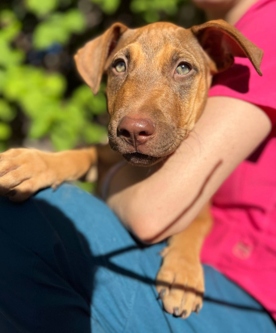Meet Thelma, an exuberant and playful pup who is ready to fill your home with joy and laughter. At just around 4 months old, Thelma is already showing signs of growing into a medium-sized bundle of energy and love. Her infectious enthusiasm and zest for life make every day feel like an adventure.