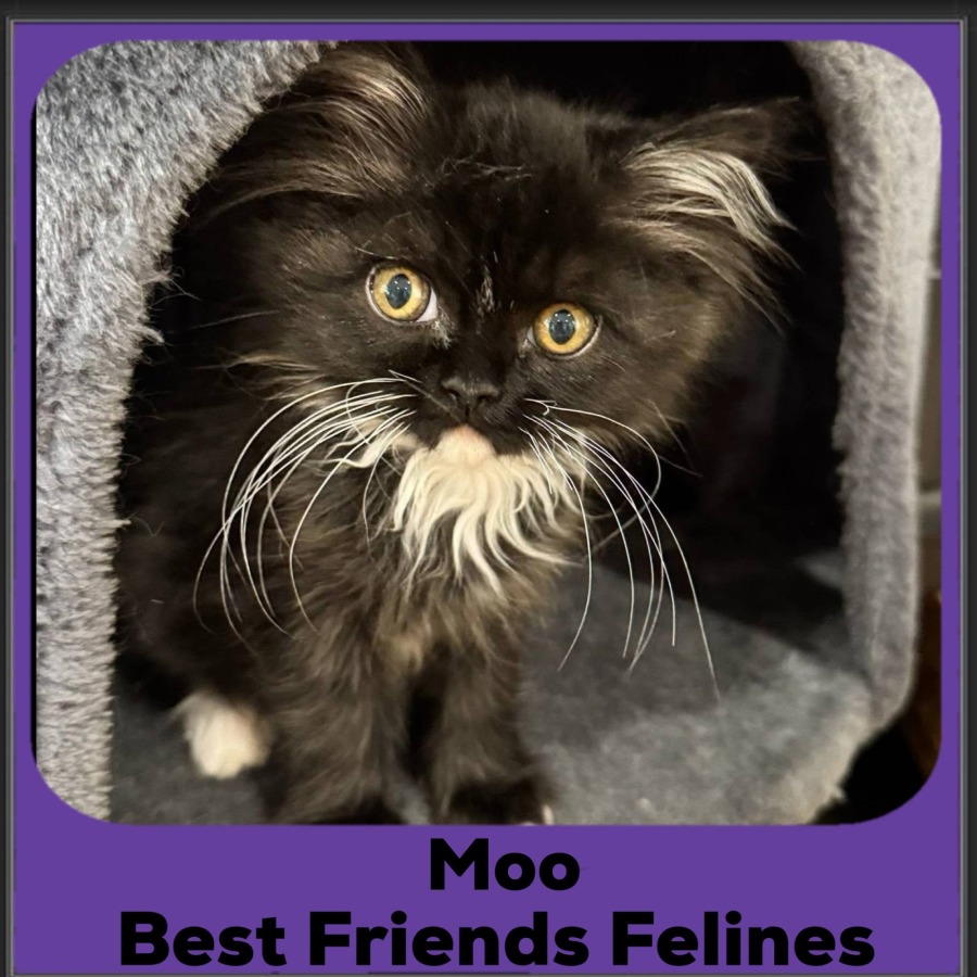 Moo might not win any feline IQ contests, but she’ll win your heart in seconds. She’s the ultimate easygoing cuddlebug — floppy, relaxed, and totally happy to go along with whatever you’re doing. Want to carry her around like a baby? No problem. Need a cat to chill in your arms while you scroll your phone? She’s already there. Moo is low-fuss, super affectionate, and just wants to be wherever you are.