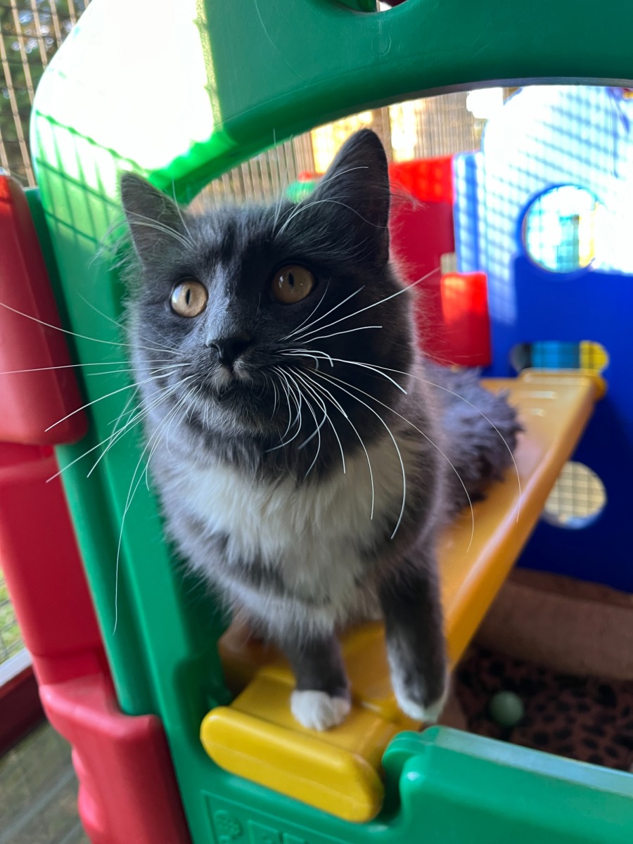 Mort is incredibly inquisitive, approaching life with a hint of curiosity and wonder, exploring every corner and toy that comes his way. He is quite playful, often getting caught up in delightful games that showcase his kitten energy. Whether it's batting around a feather or engaging in a game of chase, Mort brings joy and laughter wherever he goes.