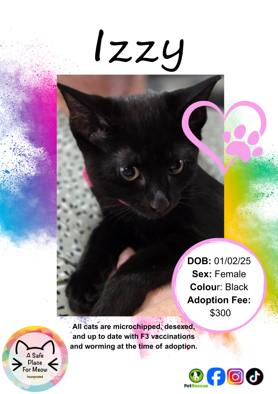 Whether curled up for a cozy nap or engaging in playful antics with her beloved sister, Izzy brings joy and warmth to any home. If you're looking for a loyal companion who shares her world with a loving sibling, Izzy and Kiki could be the perfect pair to bring into your life. Let Izzy's charm and loving nature fill your days with happiness and companionship.
