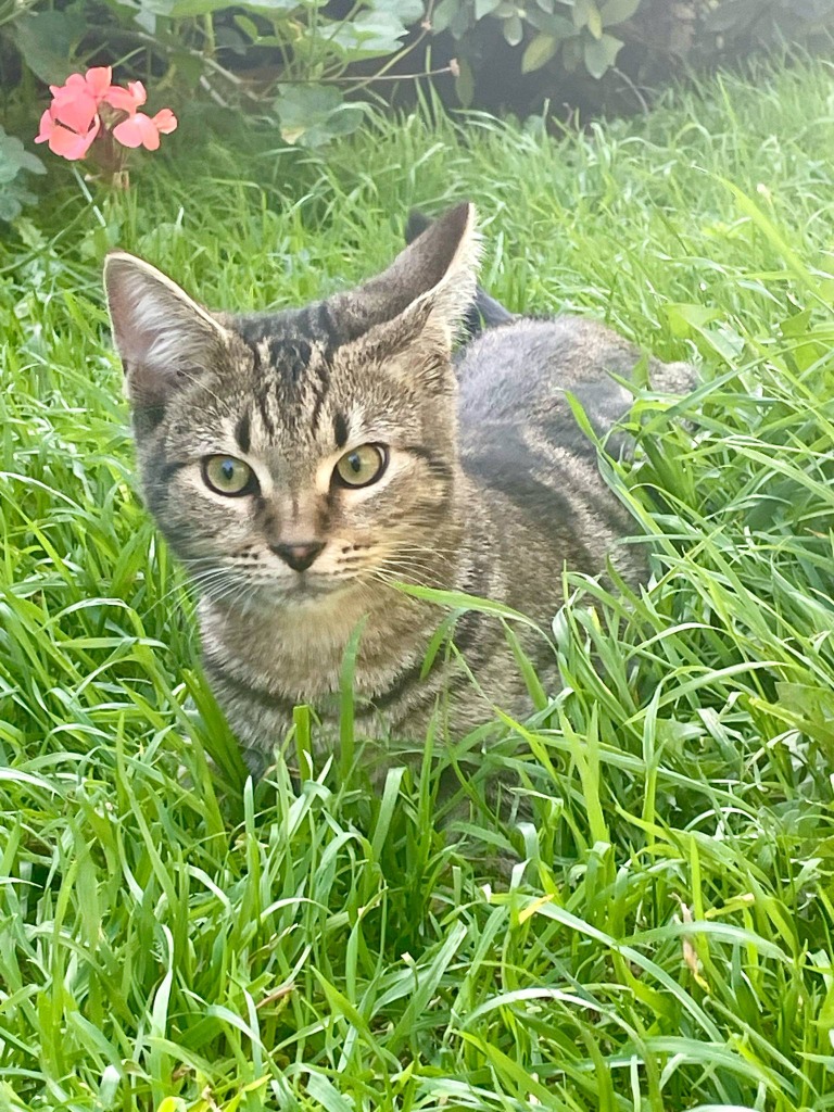 Meet Olaf, a delightful little kitten with a cheeky personality who adores both cats and dogs! Even though he’s not as big as his two sisters, that doesn’t hold him back from being a spirited little pocket rocket on the hunt for love. Olaf would absolutely thrive in a home with another feline buddy, as he loves to spend his days playing with his foster siblings. He has a whole gang of foster brothers and sisters who would make fantastic playmates!