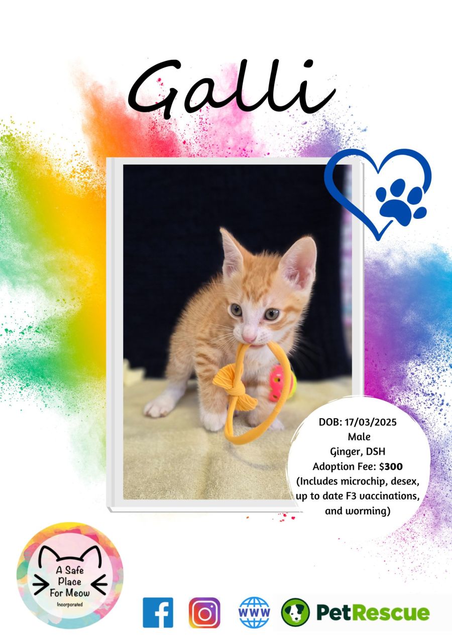 Heās a little explorer who tackles every new toy with enthusiasm and every cuddle with joy. Galli is playful without being pushy, brave without being bossy, and friendly to everyone he meetsāincluding other cats and respectful kids.