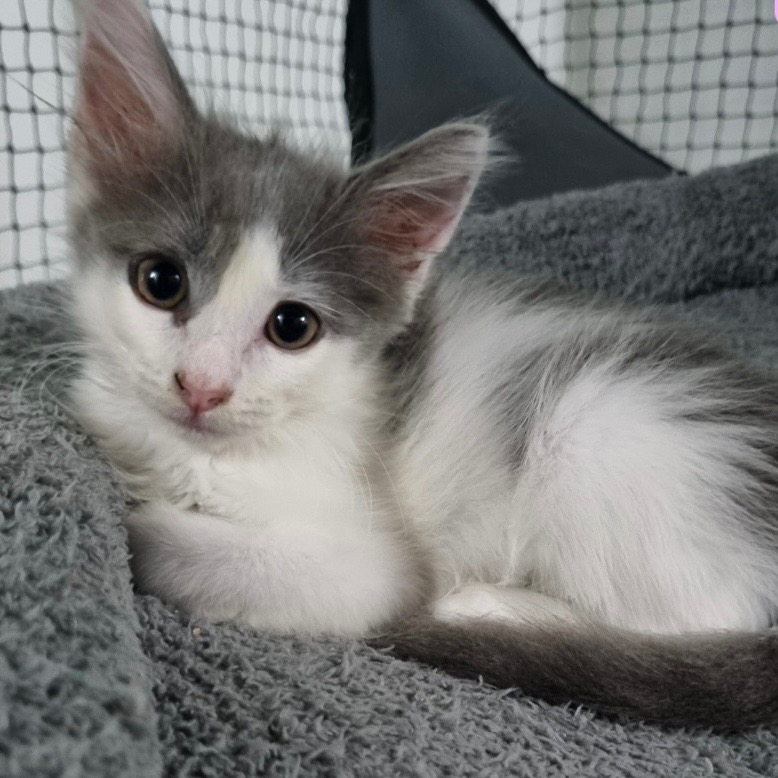 Meet Lynx! She is the smallest of the litter. She is a bit shy at first but soon warms up. Once she feels safe, with gentle interactions she will purr in your arms. She has a truly adorable personality who enjoys interactive play and chasing wand toys. With long fur she is getting used to being brushed and fussed over. Lynx has lived with many cats and a friendly dog.