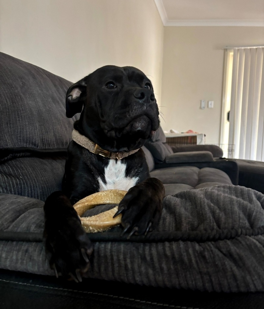 Her favourite games are chasing, tug of war, running and playing with anything water!