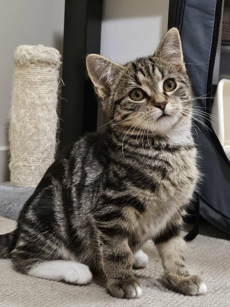 This adorable tabby kitten is as delightful as his name suggests! Maxibon is a sweet and curious little explorer, always ready for a new adventure – whether that's chasing a crinkle ball, pouncing on a toy mouse, or simply snuggling up for a nap in a sunbeam.