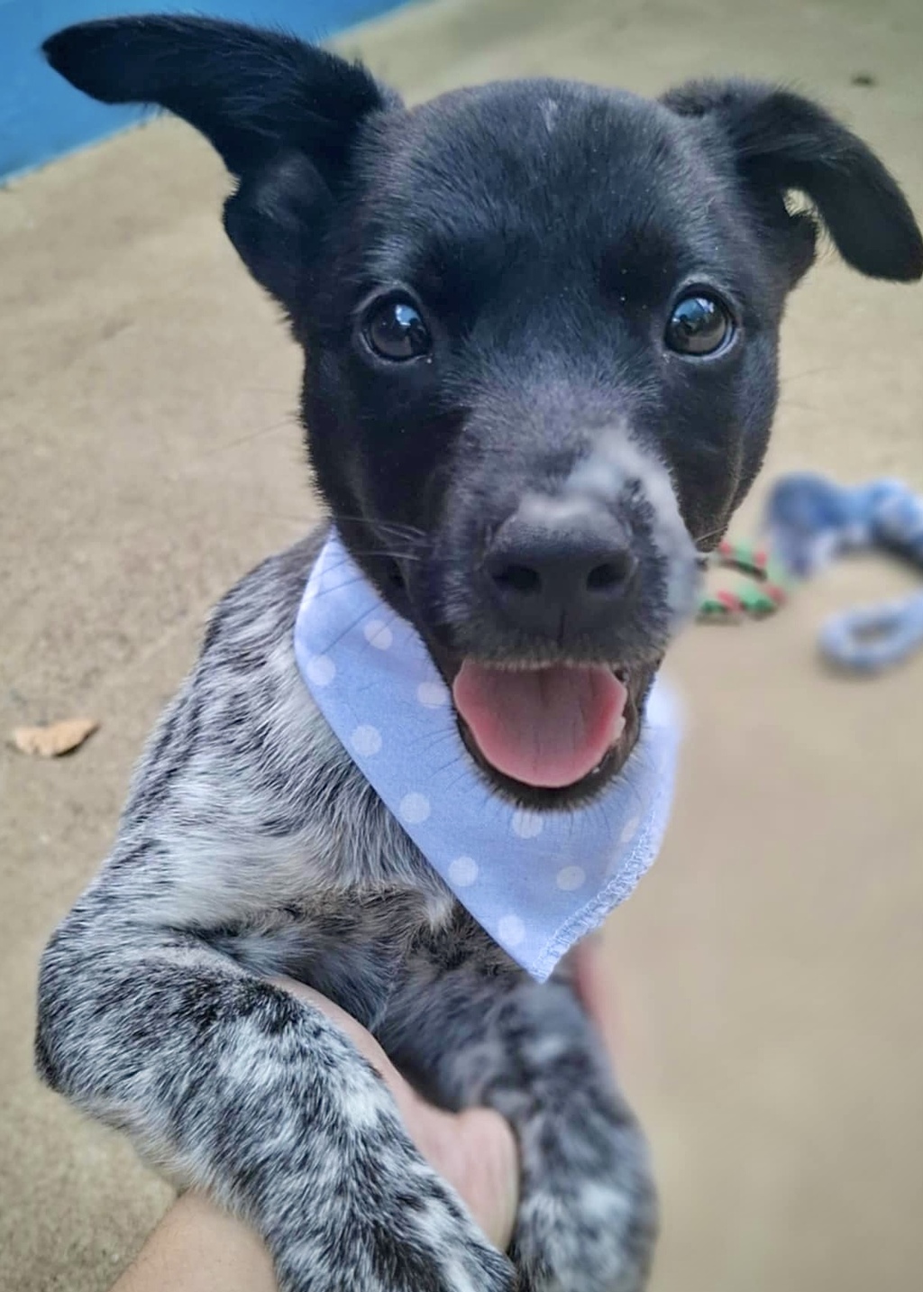 Sweet Lupa has found life a bit confusing after ending up with her littermates at the RSPCA shelter. She takes lots of comfort from snuggling in for a cuddle with staff & volunteers & she is full of sweet puppy breath & the full body wiggle! She will be an energetic & highly intelligent adult, so careful consideration is needed to ensure that you will be able to meet her needs as a working breed mix. They do not thrive when being left in back yards for long periods of time.
