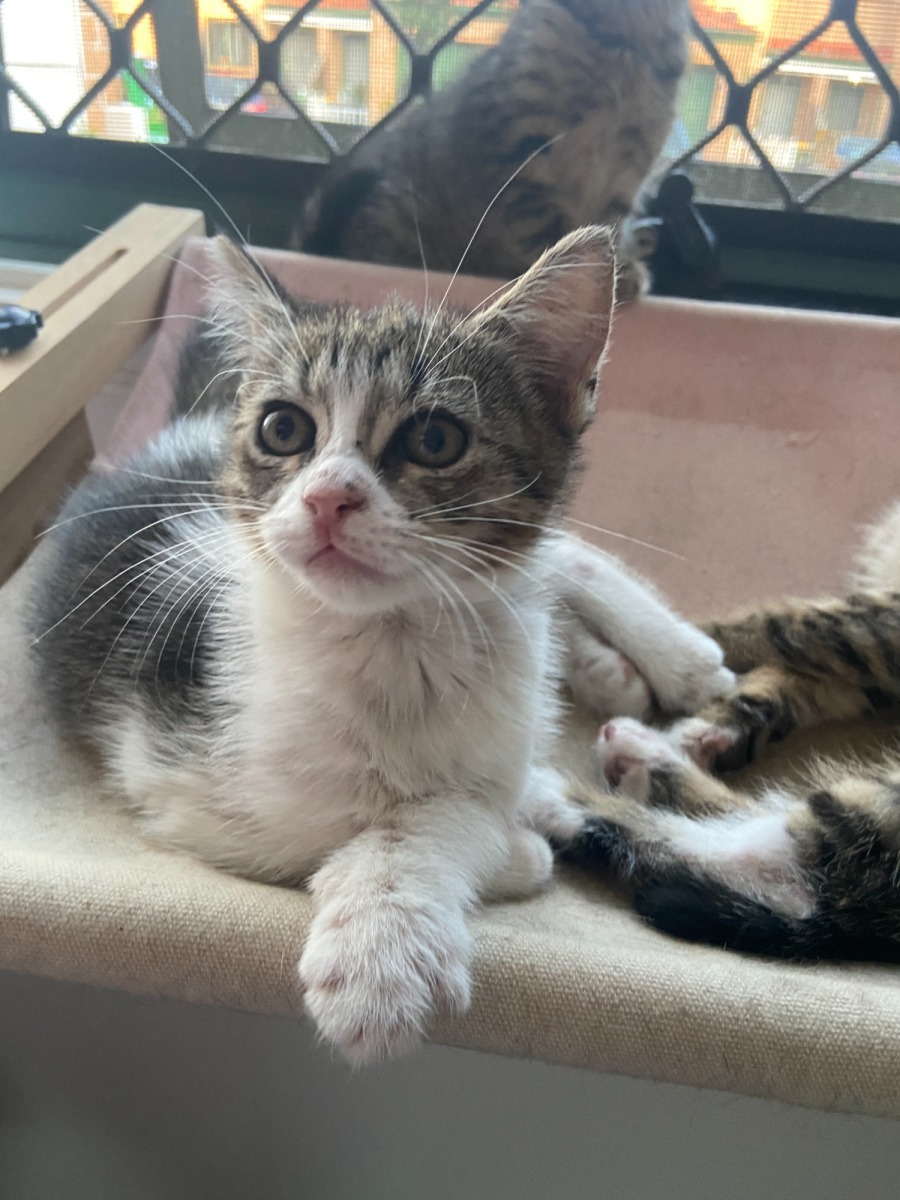 Ginny is a cute little friendly tabby/white. One of a litter of all tabbies much like the Weasley family from Harry Potter all have red hair. This lot all have their tabby stripes!