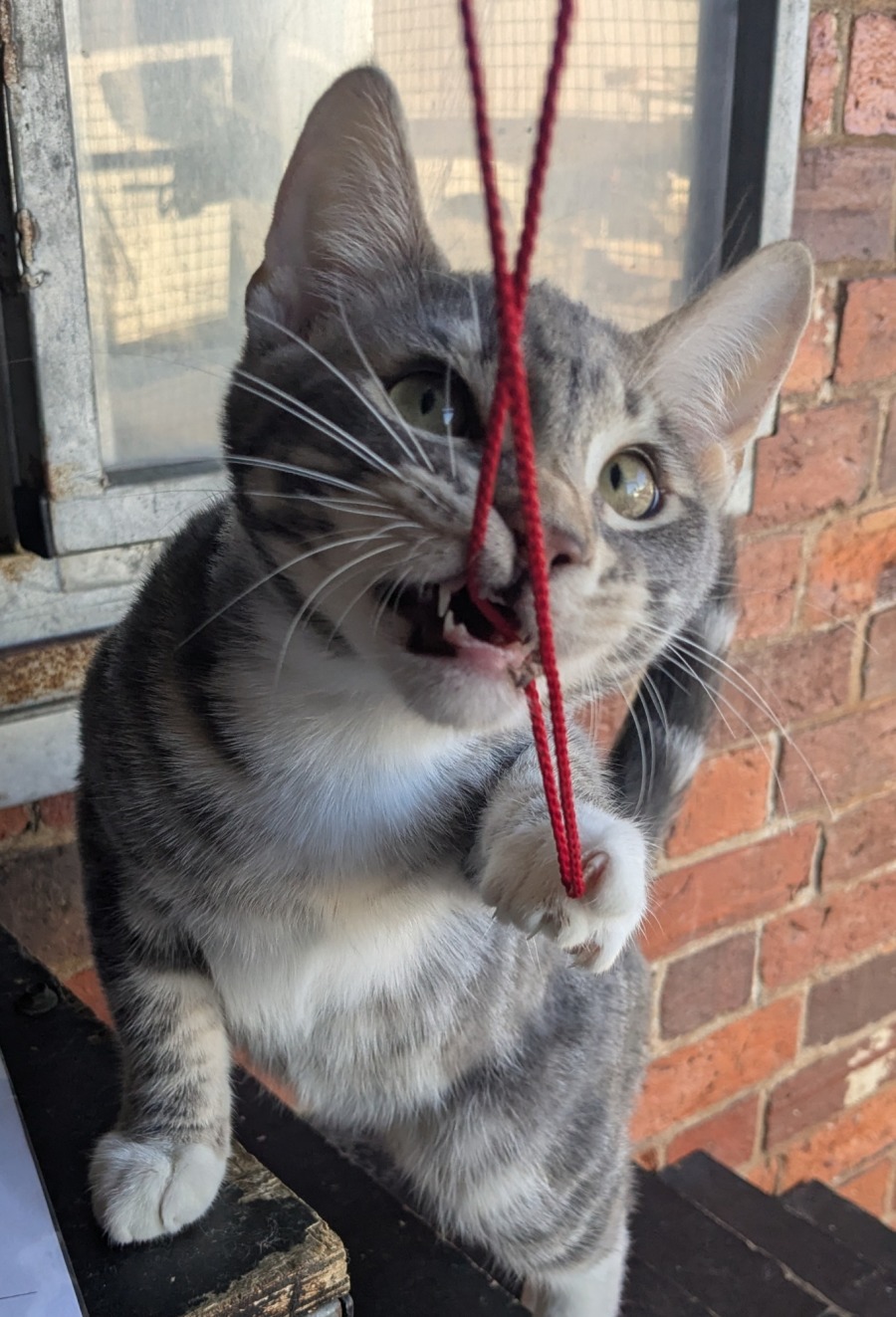 Meet Hawk, a delightful 5-month-old kitten bursting with personality and charm! This playful little guy is always on the lookout for fun and mischief. His curiosity keeps everyone entertained as he explores his surroundings with playful antics and cheeky behavior.