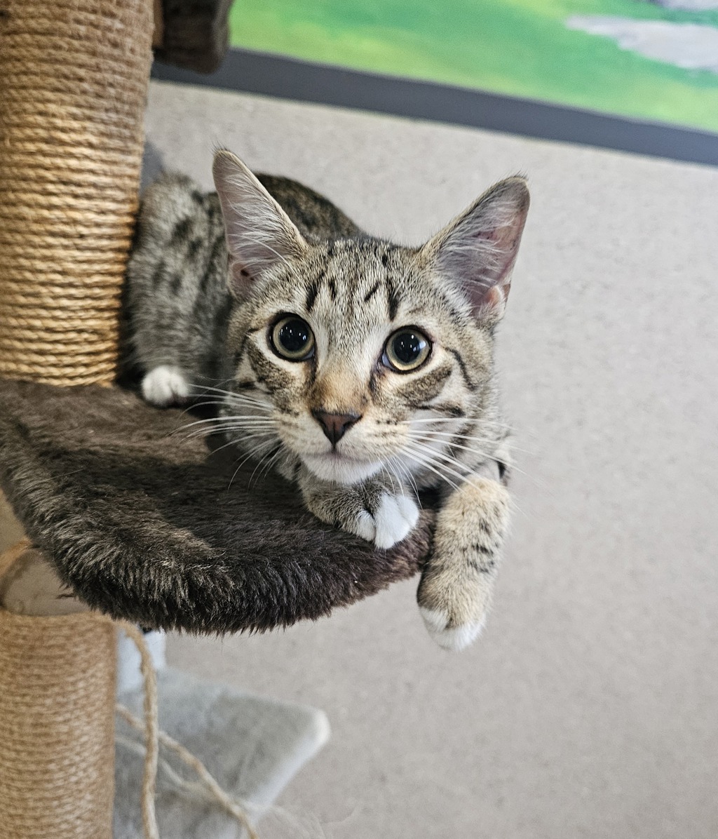 Hey there, I'm Eastwood. I'm a friendly and affectionate kitten who would suit most homes! My playful paws are always ready to pounce on anything that moves. I love playing with wand toys and mysterious shadows on the wall! When I'm finished playing, I love nothing more than finding a warm lap to curl up in.