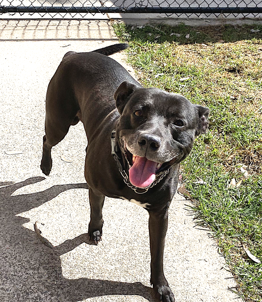Typical of staffies, Midnight is very affectionate and would make a perfect loving pet for a quiet household.