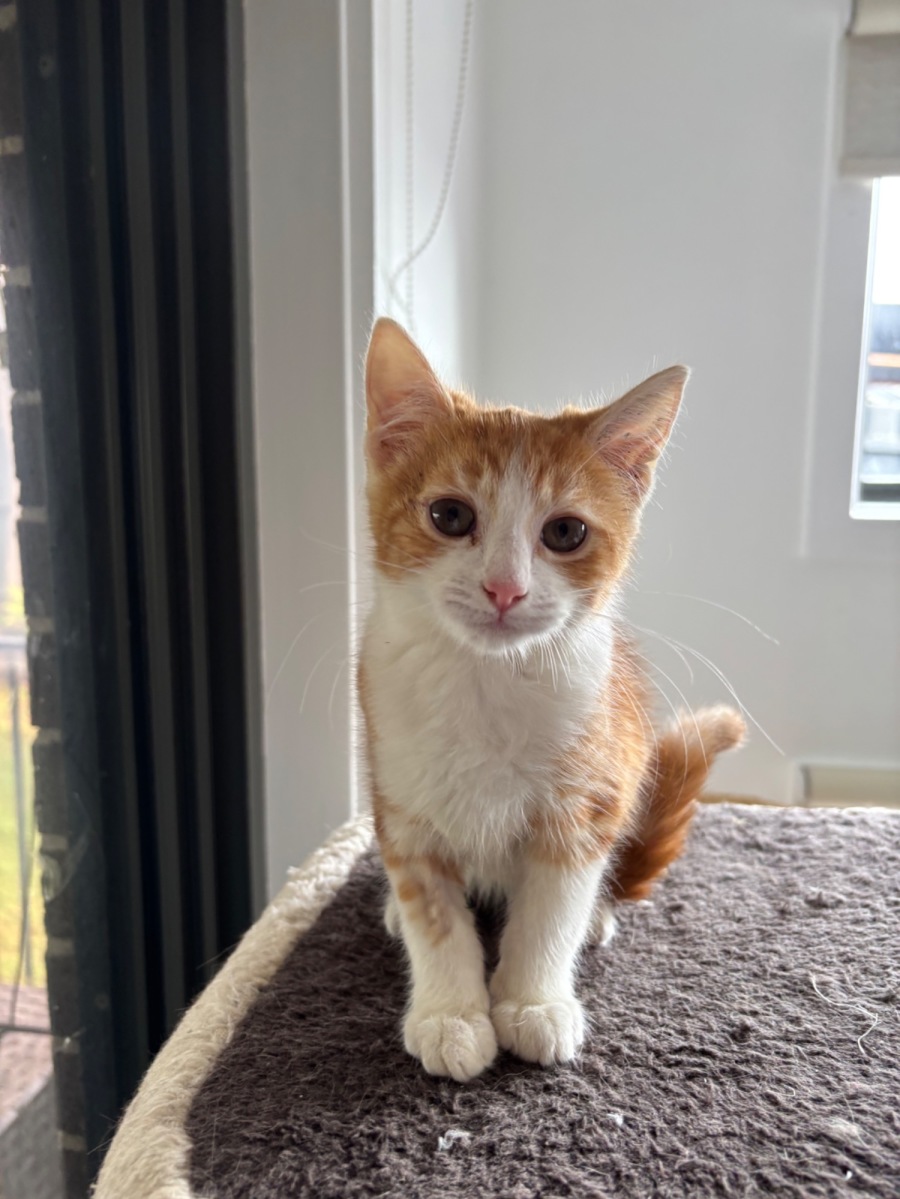 He is playful and loves to chase cat toys up and down the hallway.