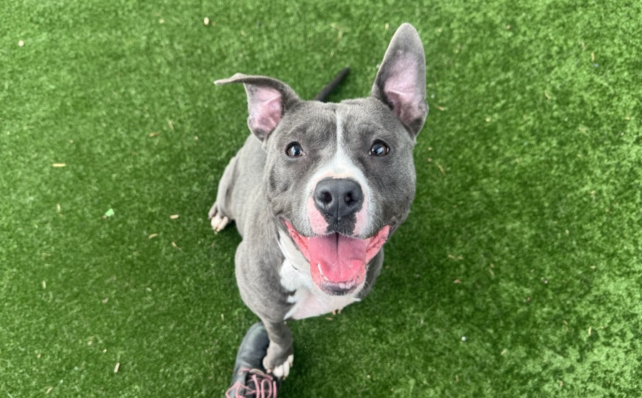 Gem knows how to sit and loves treats but needs some training to remind her about her manners. She has shown to be good with other dogs, but she’s still working on her jumpy excitement and would do best with older kids who can work on her ‘four paws on the floor’.