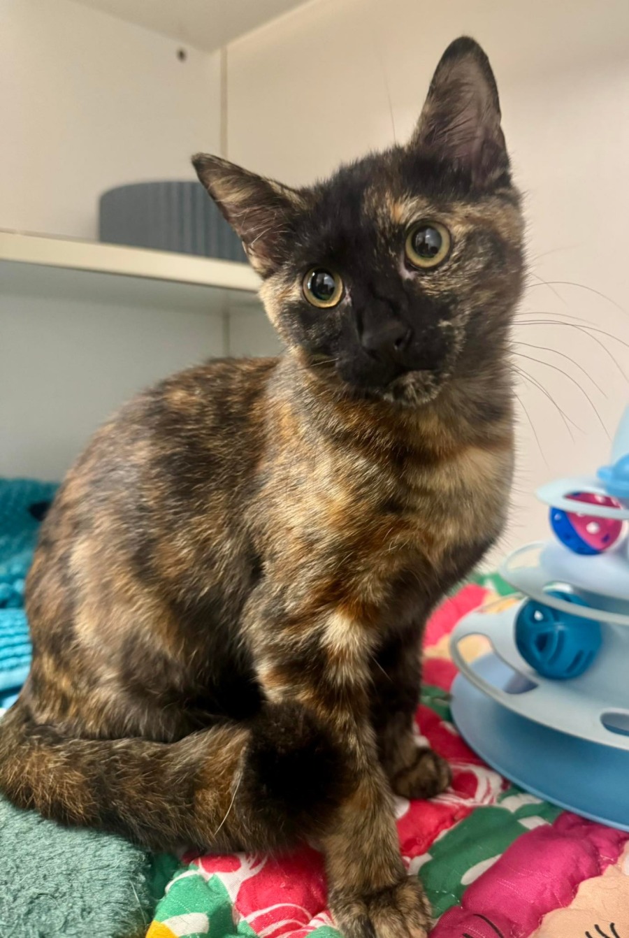 Snap has grown to love being doted and loved on, investigating her toys, relaxing on her scratching post and cuddling up in her blankies with her siblings for a good snooze.