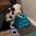 We both absolutely LOVE play time! Skittles is always the first one to run up and greet you and the first one to play with toys and the cat wand. Parkway prefers to roll around on the ground and get head-butts and purrs. Although she definitely still enjoys play time. We both love our Churu treats as well! We love cuddling on the bed of a night and even enjoy watching TV with our foster humans. We are just the sweetest little kitties 💕