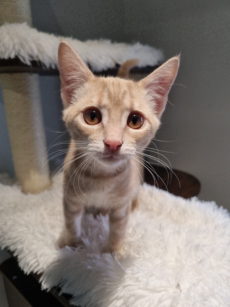 Get ready to fall head over paws for this adorable trio of playful, affectionate kittens! Snowflake, Whimsy, and Butterscotch are a delightful bundle of joy, full of energy, curiosity, and charm. Whether they're chasing after ball toys, tumbling together in a kitten pile, or curling up for a cozy nap, these sweethearts do everything with a whole lot of heart.