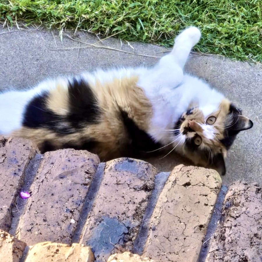 Sweet pea is a domestic shorthair cat. She has a beautiful medium haired calico coat. Her patterns are stunning and certainly have her standing out from the crowd.
