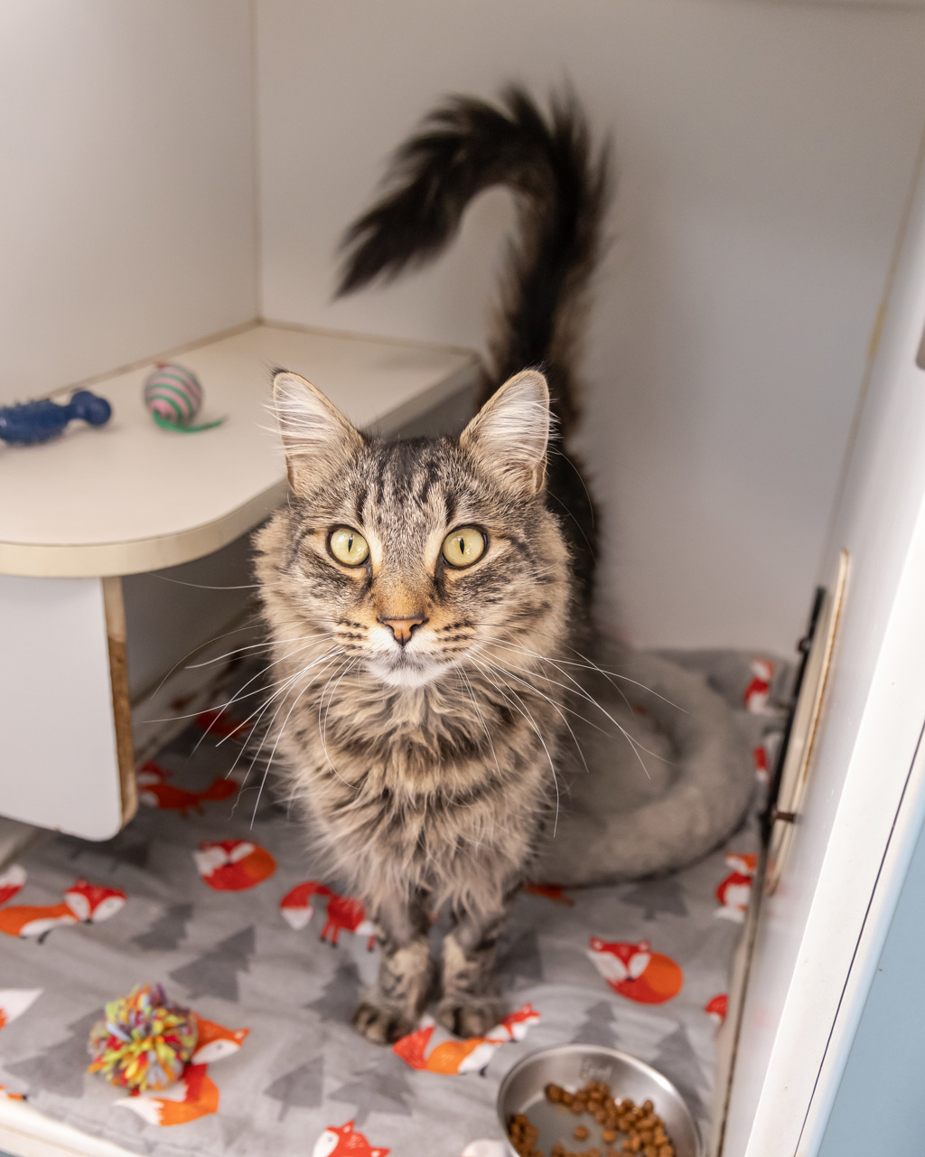 This gorgeous ball of fluff is not just a pretty face - Jesse is full of charm, cheek, and chatter! He's an affectionate little guy who lives for a good pat and will let you know (loudly and proudly) when it's time for cuddles. Whether you're bingeing your favourite show or working from home, Jesse will be right there by your side, offering his moral support and commentary - in the form of delightful meows, of course.