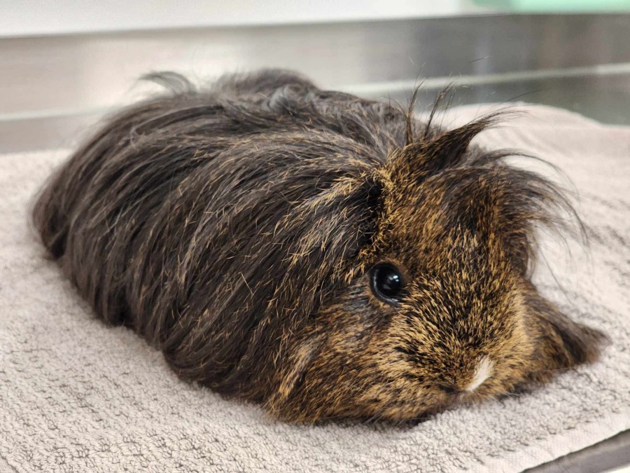 Meet Cola, a calm and friendly guinea pig who enjoys human interaction and being gently handled. She’s comfortable sitting on laps and getting brushed, making her a great companion for those looking for a low-maintenance, affectionate pet.