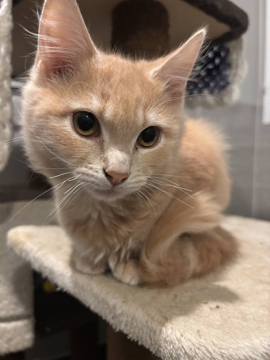 Say hello to Douglas, the softest little champagne-colored dream you’ll ever meet. With his silky fur and gentle purr, Douglas is the ultimate cuddle connoisseur. Whether he's nestled in your arms during a cozy nap or chasing after his favorite feather toy, this kitten brings joy wherever he goes.