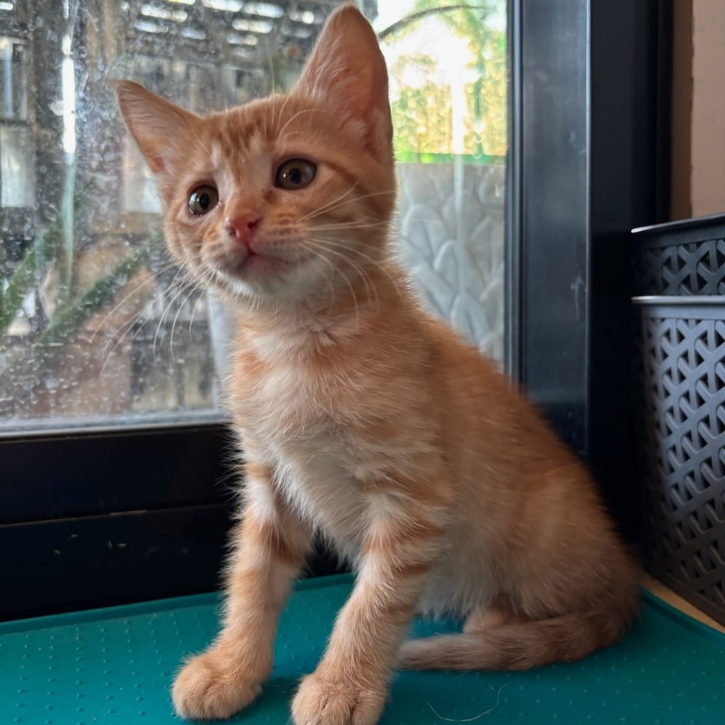 Della is a beautiful ginger kitten with a heart full of love. She's the perfect blend of cuddly and playful. She'll happily chase feather toys and wrestle with her siblings, then curl up beside you for a nap. Della is incredibly affectionate and thrives on human connection, often purring the moment she's pick up.