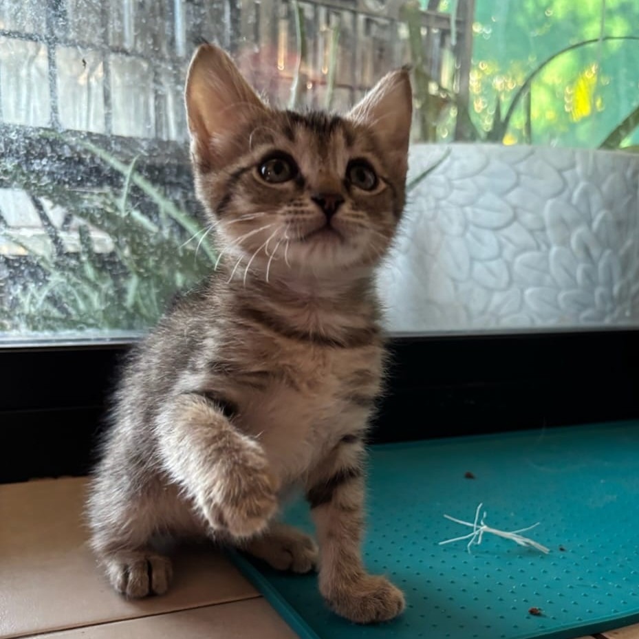 Draco is a handsome tabby kitten with soulful eyes and a calm, comforting presence. He's playful and loves batting at toys, exploring cozy corners and lounging in sunbeams. Draco is sweet and affectionate. He enjoys snuggling and relax with his human or furry companions.