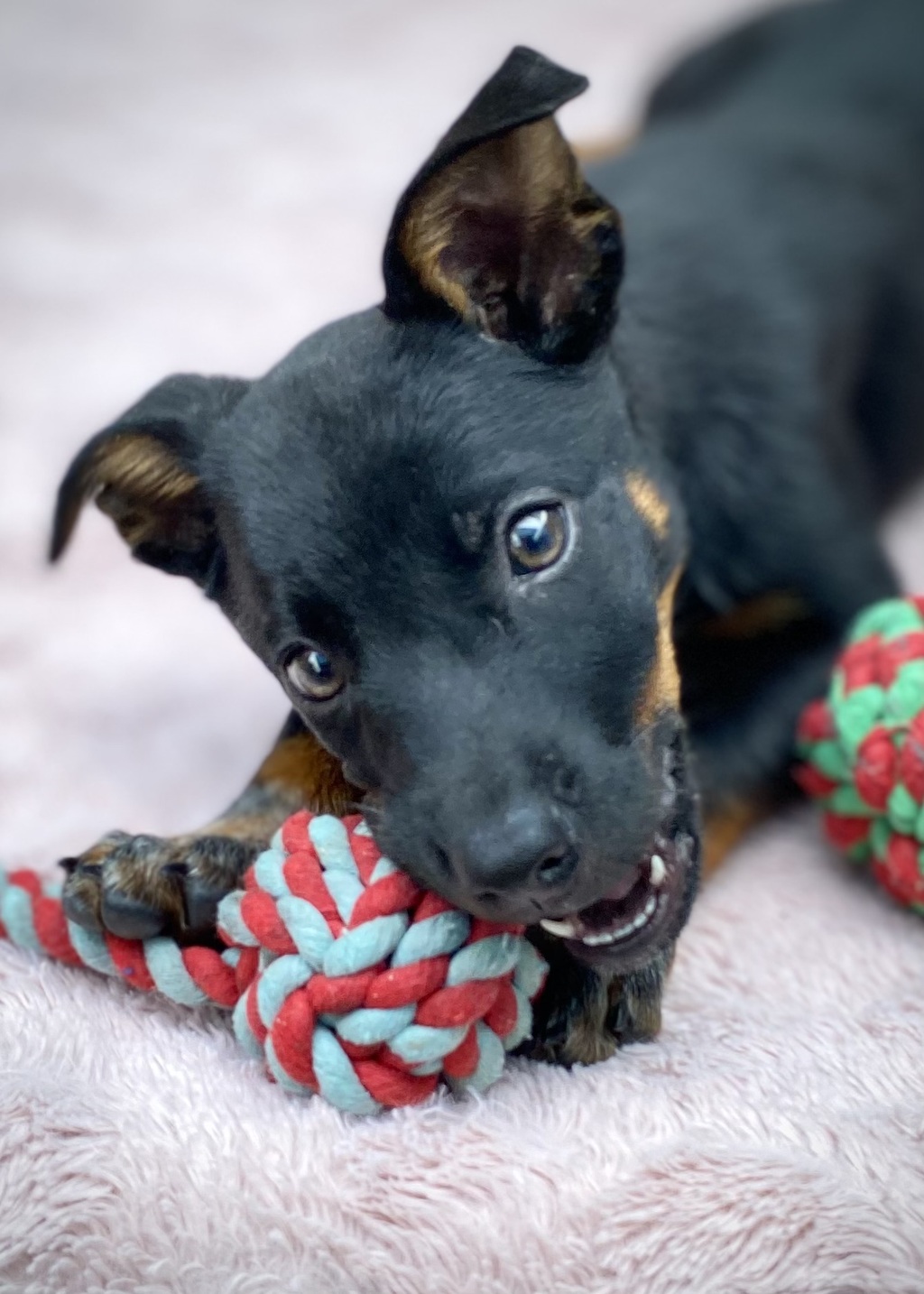 Violet is a sassy little girl! She loves racing around with toys in her mouth, she is a busy bee who loves to learn. If you already have a dog that's looking for a friend, Violet would enjoy having a canine companion as a buddy & mentor! Violet is a friendly, bright little girl eager to learn some cool tricks, so grab your treats & go have some fun with this gorgeous little working machine! She will definitely need lots of physical & mental enrichment in her life to keep her happy & meet her needs.