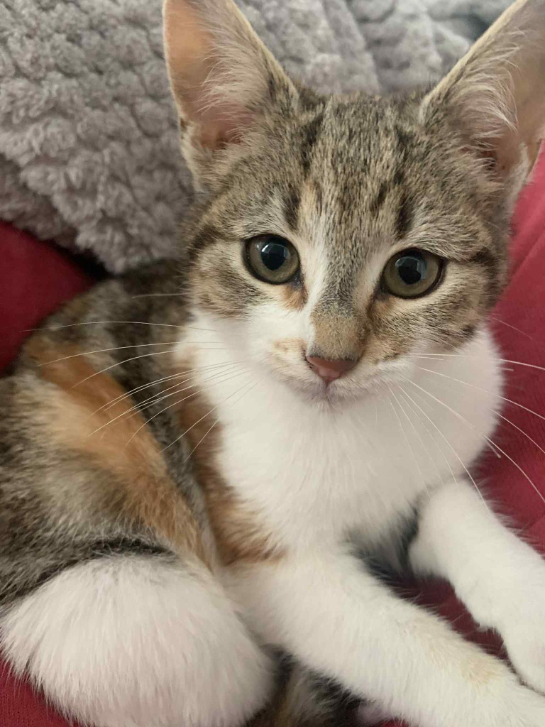 Chani is a calm and sweet little kitten (the smallest and calmest of her litter) who loves nothing more than snuggling in your lap and watch TV. If you're not on the couch, she will patiently wait on the couch for you to join her.