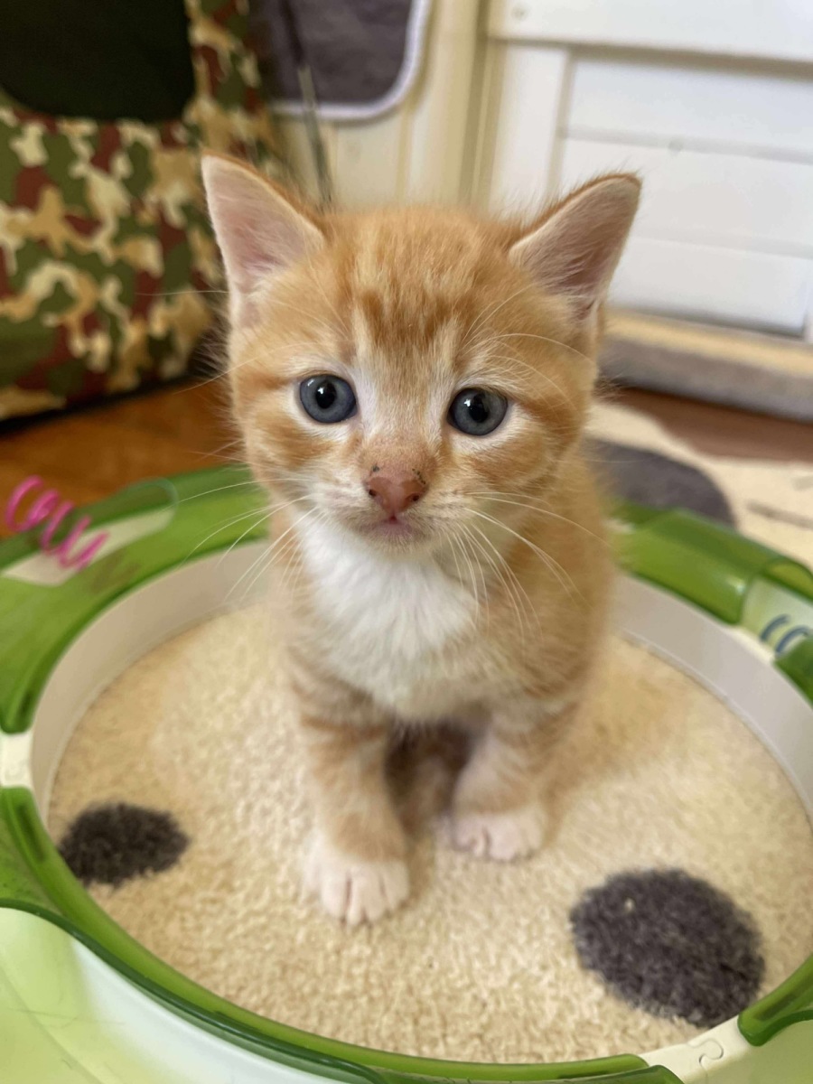 Meet Paul, the picture of classic kitten charm with his warm orange stripes and bright white socks. He’s got a calm, thoughtful air about him - always observing before making his move. But don’t let his composed demeanour fool you: Paul has a playful streak and a soft spot for snuggles once he’s warmed up. Whether he’s perched like a tiny lion surveying his kingdom or curled up like a cinnamon bun, Paul brings a gentle, golden glow to every moment.