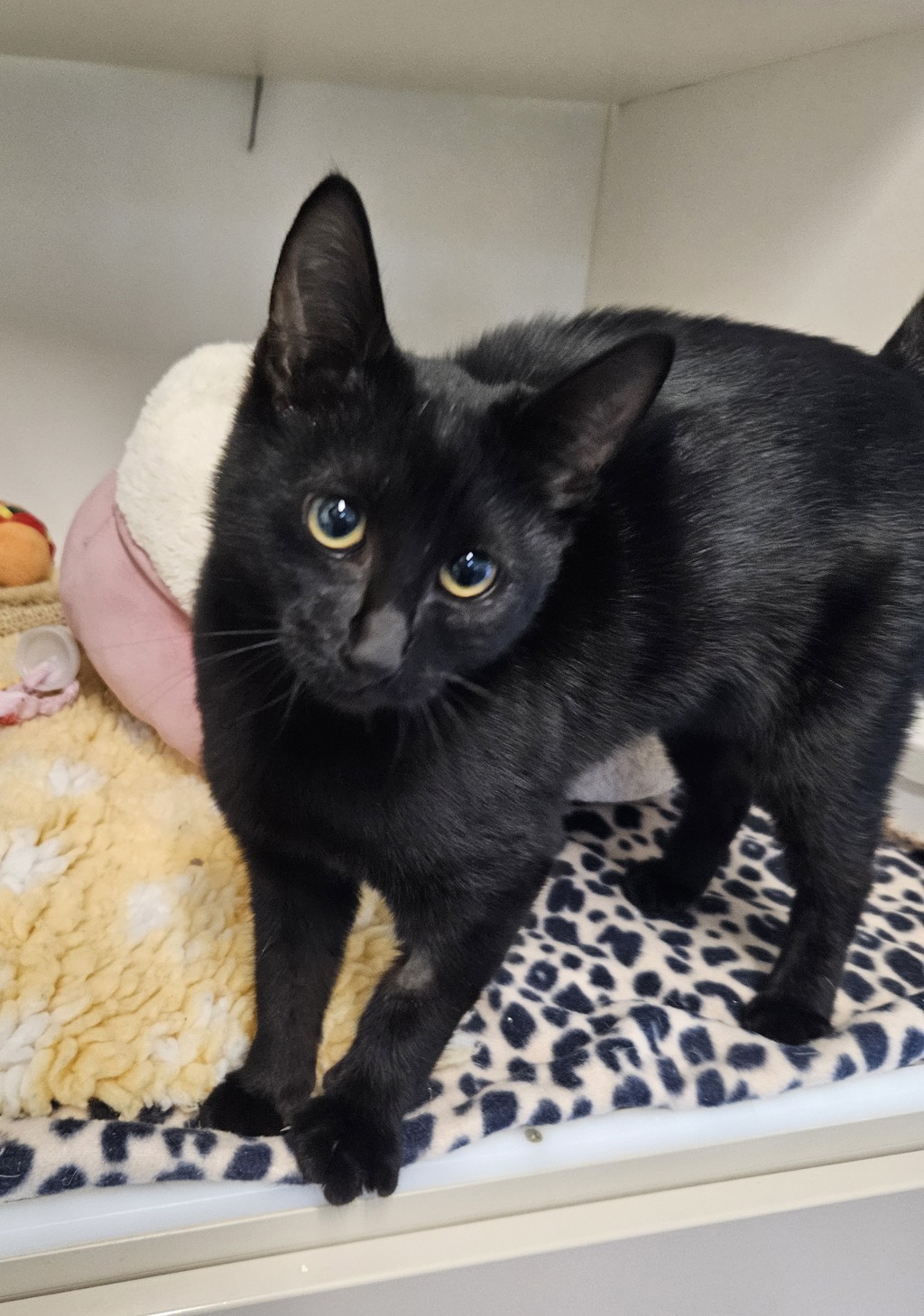 Say hello to Phantom, a 4-month-old ball of midnight fur and pure affection! Don't let her mysterious black coat fool you-this little guy is all heart and snuggles. Phantom is the ultimate cuddle companion, always ready to curl up in your lap, nuzzle into your neck, or follow you from room to room like your tiny shadow.