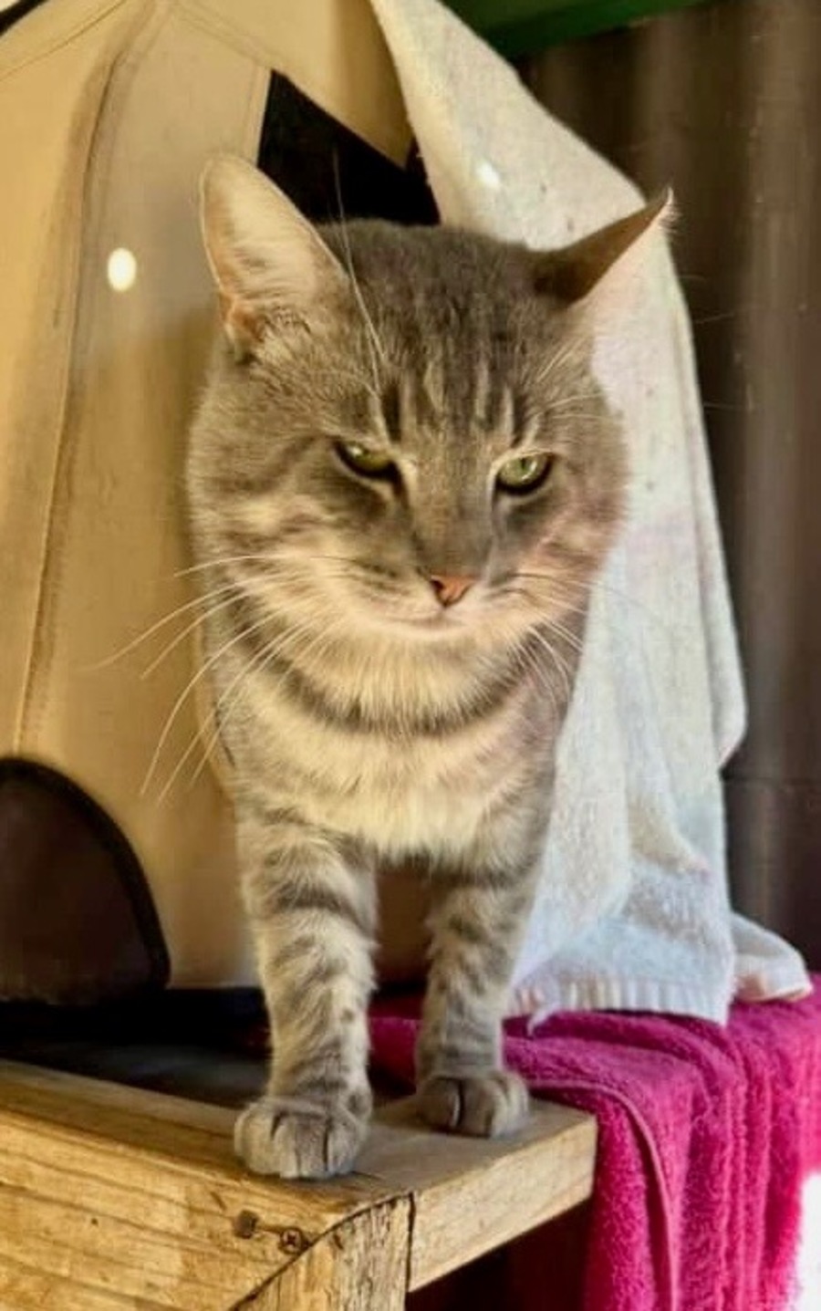 Marty is a big, beautiful silver tabby with the most handsome cheeks you’ve ever seen! At around 4 years old, he is a relaxed, low-key companion who enjoys the quiet life. While he may be a little timid at first, once he gets to know you, his gorgeous purr and love for head pats and smooches will melt your heart.