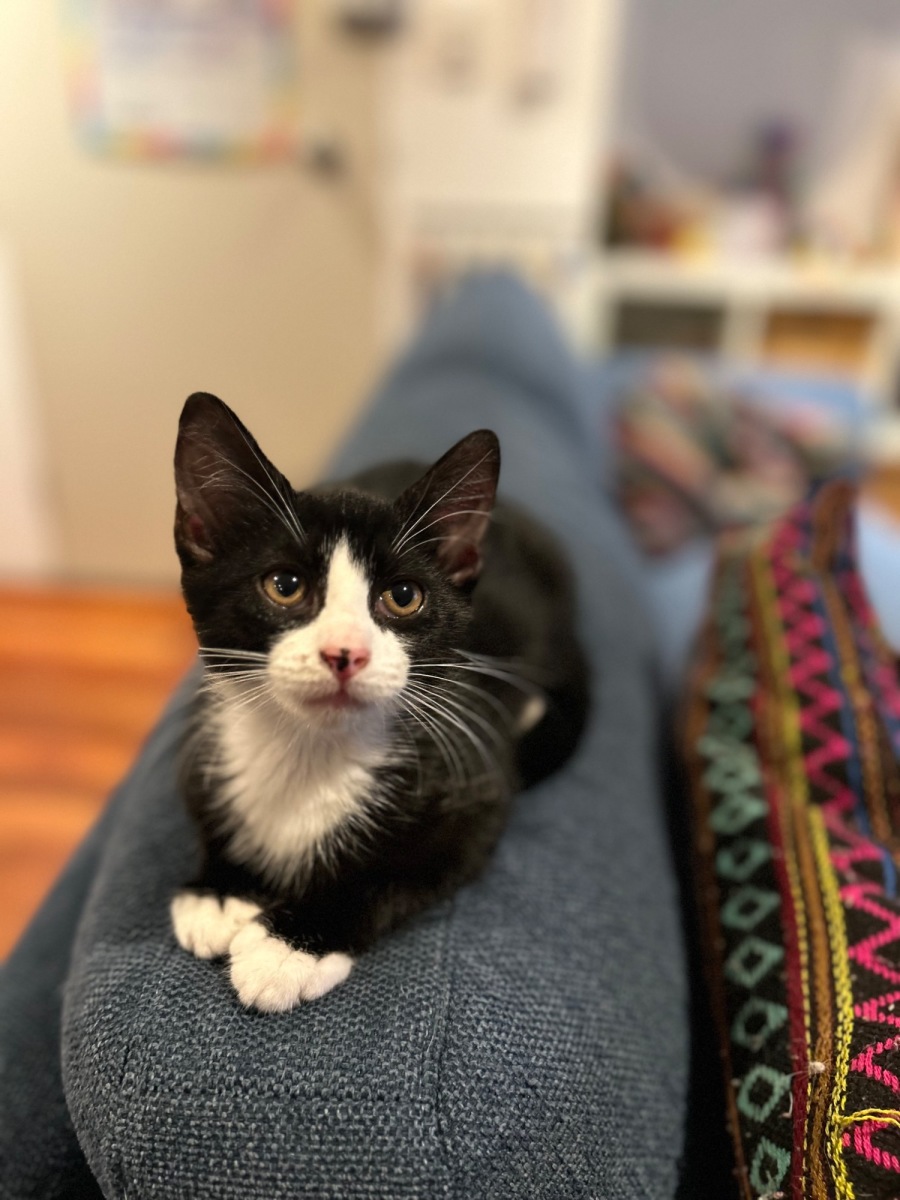 Meet Sox, a divine little feline charmer whose affectionate nature is nothing short of enchanting. With a penchant for companionship, Sox loves nothing more than spending time with his two sisters, showcasing his adoration for family and friends. He revels in the company of his human companions, ensuring he's always nearby, especially when you're engrossed in work. Whether he's perched on your desk or curled up beside you, Sox makes the perfect office pal.