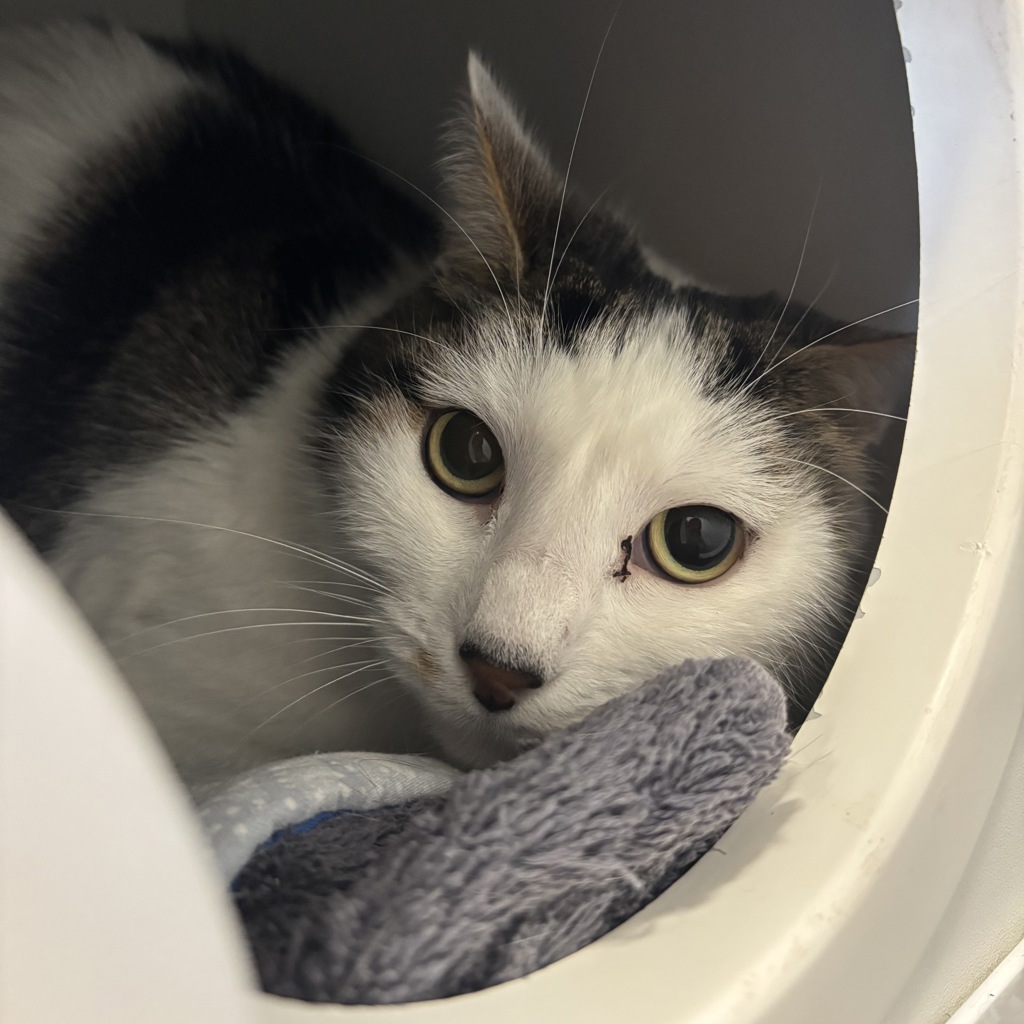 My name's Monroe - a shy starlet with a heart of gold. I might not seek the spotlight straight away, but give me time and I'll shine. Like my namesake, I've got charm and grace - just a little more velvet glove than red carpet. I dream of a quiet home where I can feel safe and adored. With patience and love, I'll be your leading lady. After all, even diamonds start in the rough!