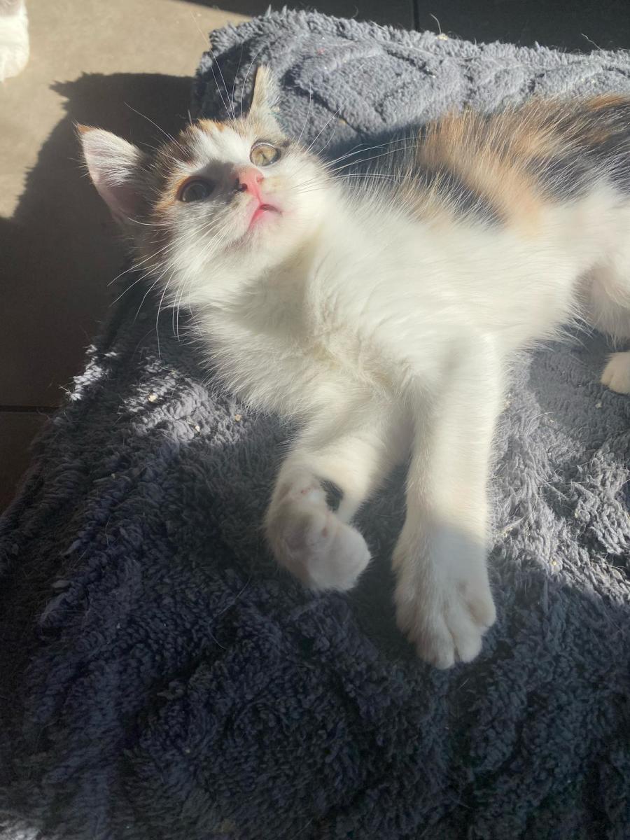 Ella is an affectionate kitten who loves nothing more than curling up in your lap for a peaceful nap, her soft purrs serenading you into relaxation. She's showing wonderful progress in socializing with other cats and is learning to appreciate the company of the resident dog, making her a versatile addition to a variety of homes. Although she may be a touch timid at first in a new setting, with a little love and patience, she'll become an integral part of your family.