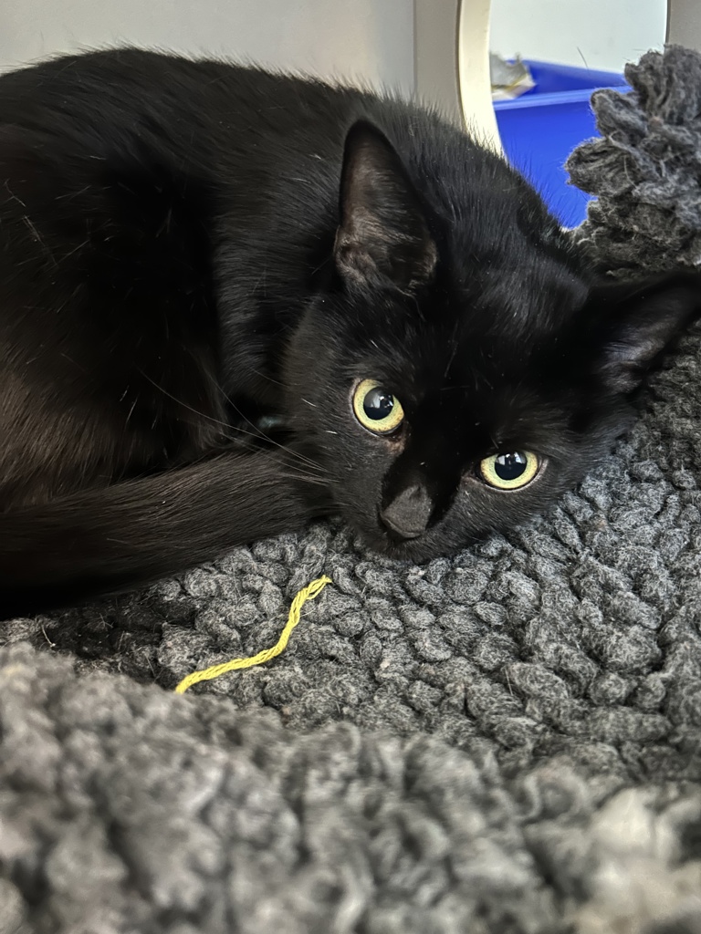 She is happy to stretch out on your bed and accept head to tail pats while making biscuits and sharing her contentment. She's learning to play and enjoys chasing a wand toy and is delighted if you provide some catnip for her to roll around in.