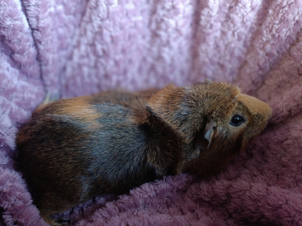 Meet Steve, a charming young male guinea pig with a beautiful brown coat that perfectly matches his warm personality. He is well-socialized and thrives in the company of humans and other guinea pigs. Steve has a playful spirit and loves to explore his surroundings, making him a delightful companion for anyone looking to add a furry friend to their family. His cheerful disposition is complemented by his love for fresh veggies, green grass, and guinea pig grains, which he eagerly munches on as he scuttles around his habitat.