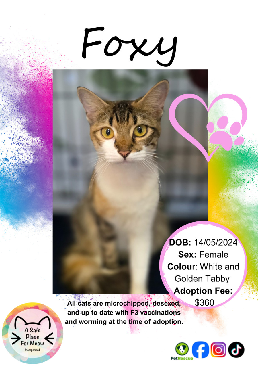 While she exudes an air of sophistication, Foxy absolutely loves a gentle pat and will reward you with soft purrs and contentment as she leans into your hand. Her calm nature makes her an ideal companion for someone who appreciates the finer moments in life.