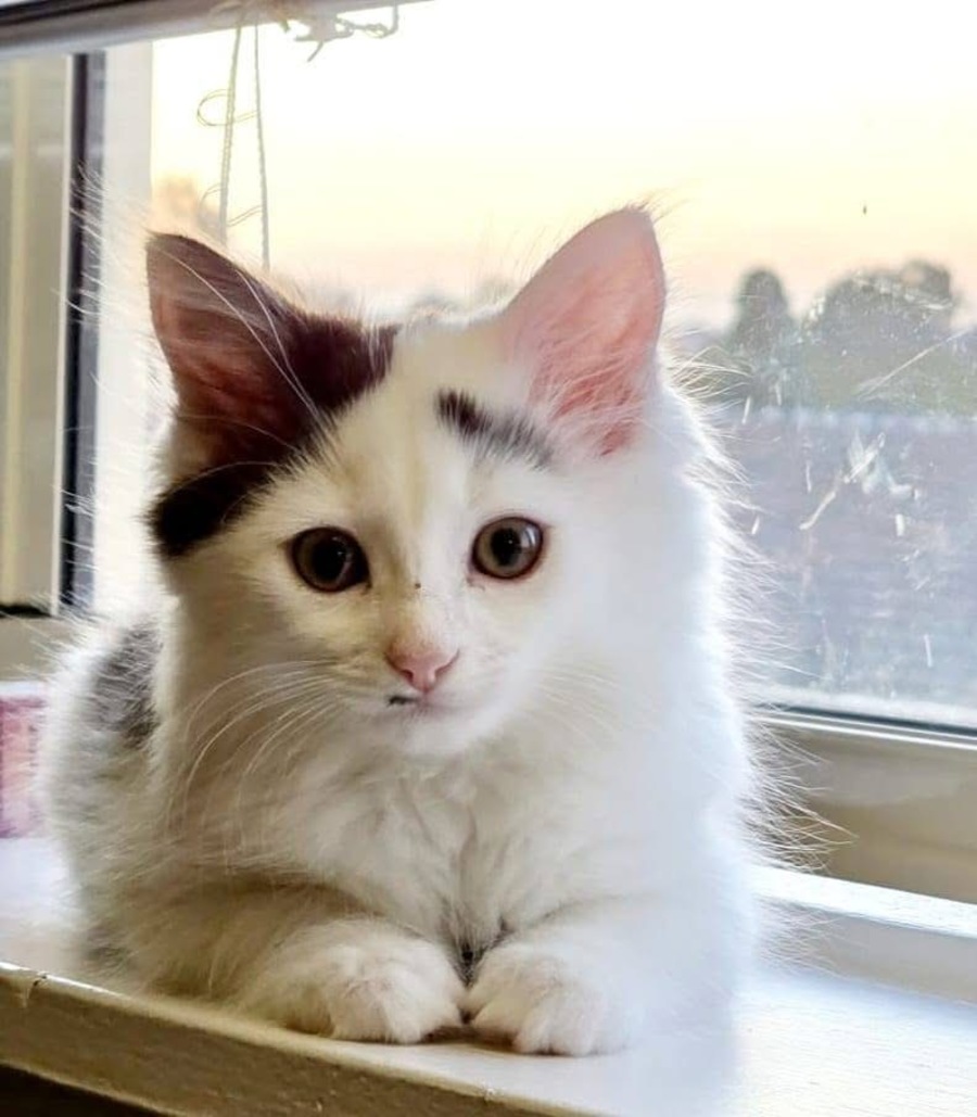 Mackenzie is a playful, cuddly kitten with the a fluffy cow coat and a big heart. She loves chasing toys, soaking up sunbeams, and snuggling after a BIG play session.